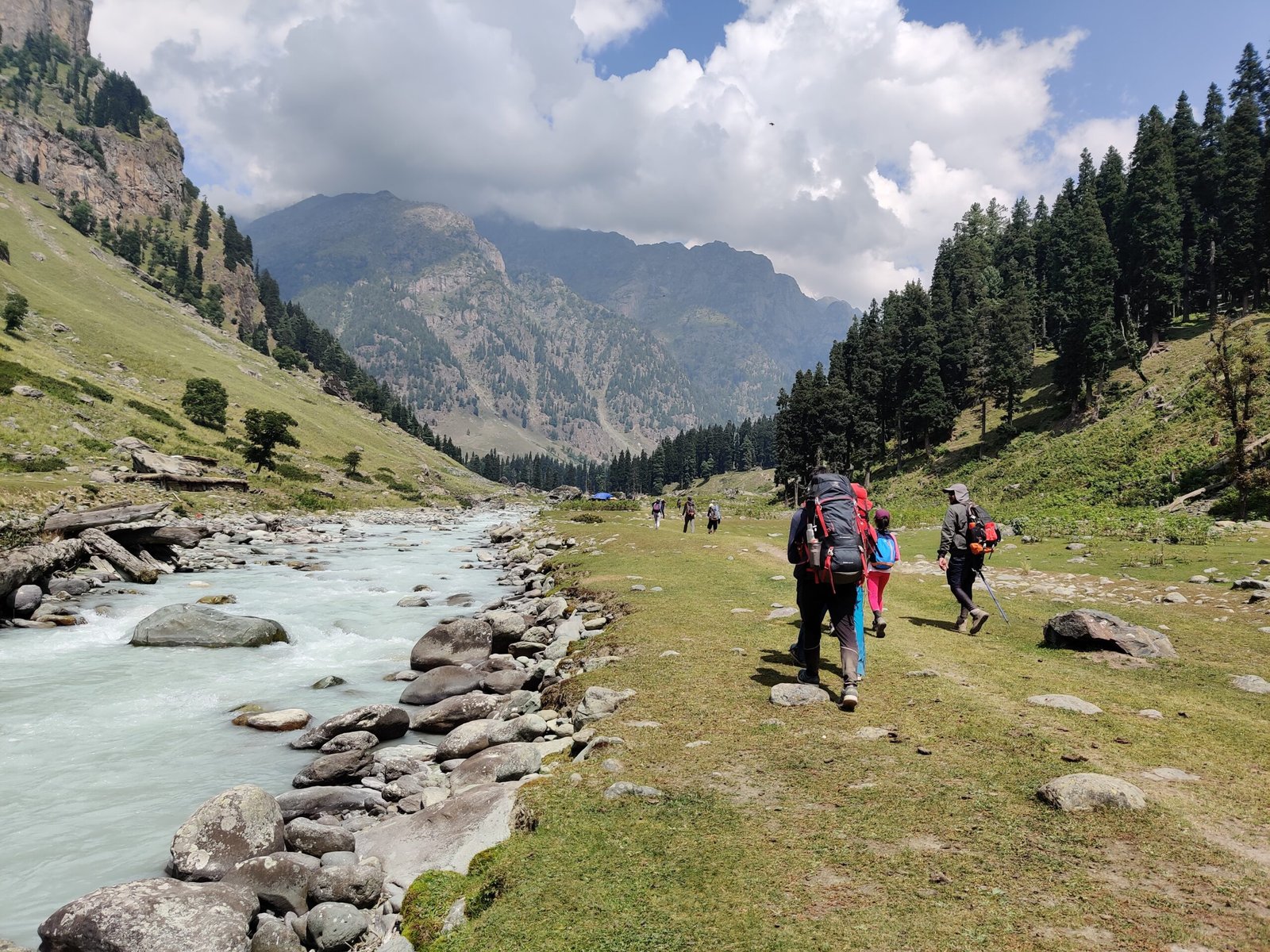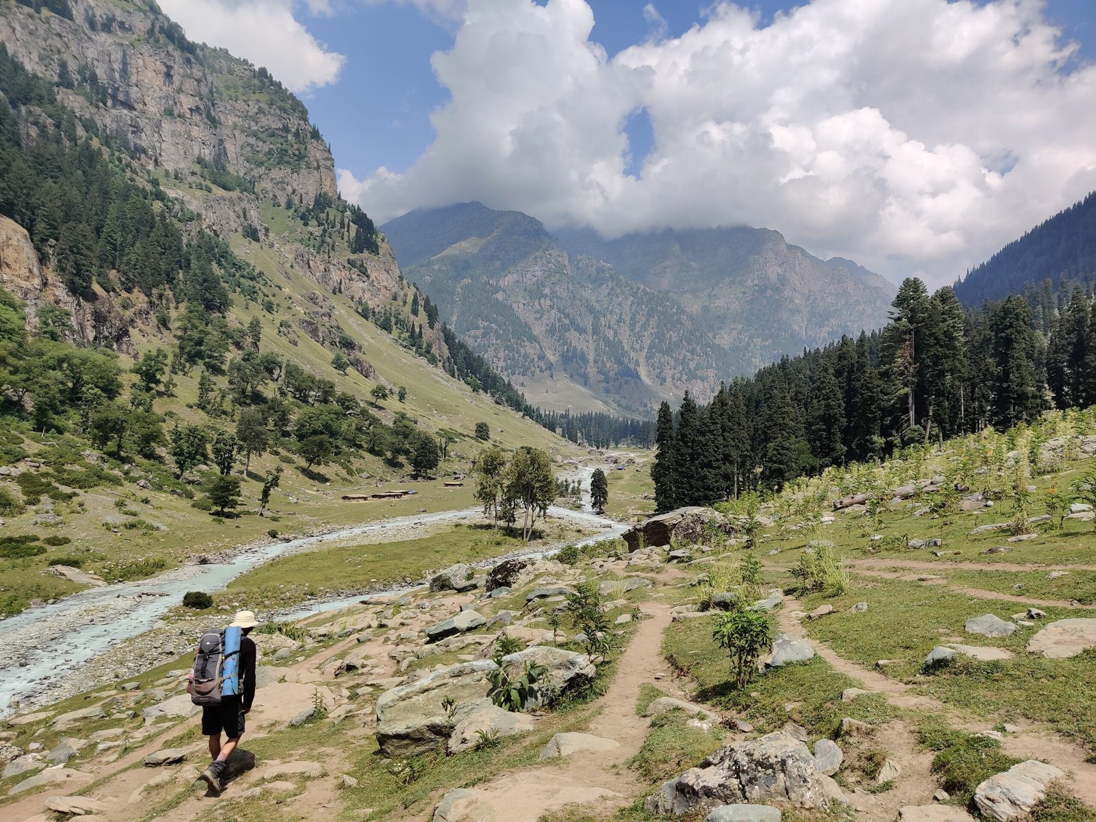 Grade: Easy with a well-defined trail Today’s trail is a gentle ascent following the Lidder river, mostly on flat meadows and occasionally passing through clusters of conifers. The beautiful campsite of Lidderwat is at the confluence of the Lidder River, flowing down from the Kolahoi glacier, and the Tarsar stream.