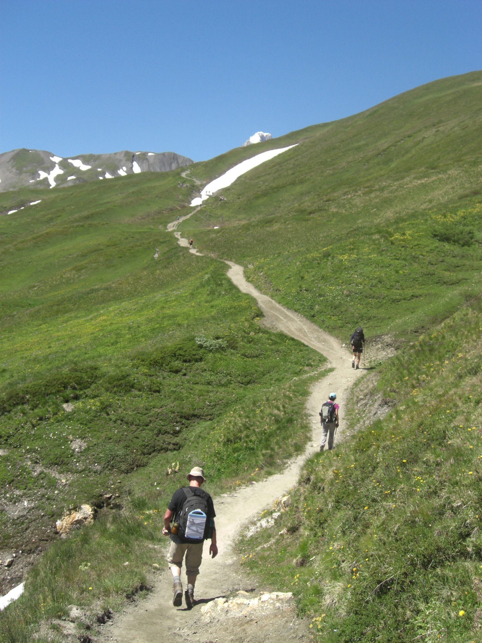 This trip should appeal to you if you regularly take walking weekends and are happy covering 16 – 22 km (10-14 miles) each day, with a number of ascents and descents. On the TMB we normally walk for between 6 and 8 hours each day and, be outdoors for 8 or 9 hours. We generally follow good, well-maintained paths and the highest altitude we walk to, is 2537 metres, so you should not feel the altitude apart from a little shortness of breath. In late June and early July we may encounter patches of snow, particularly at the cols, and may have to kick steps to make the path secure. We aim to have twin-bedded rooms throughout, though occasionally there may be more than two in a room at the auberge at Les Chapieux.